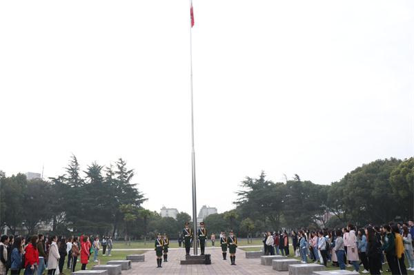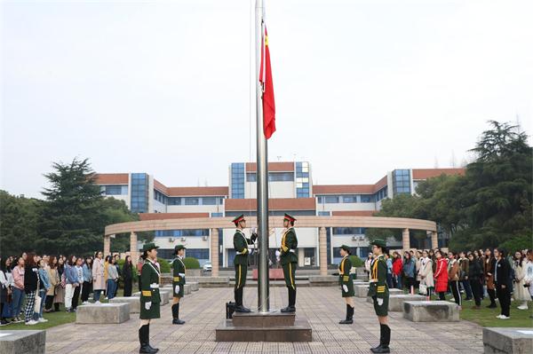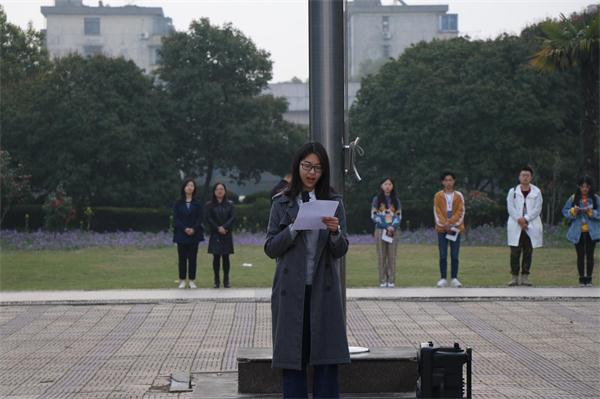 3月26日清晨,百家乐赔率 举行新学期第一次升旗仪式,百家乐赔率 师生代表200余人参加了升旗仪式。会计174班章姜元寅作为学生代表进行了国旗下讲话,号召全体同学继续遵循“精商明德、智道致工”的院训,坚持梦想,珍惜时光,拼搏进取,追求卓越。