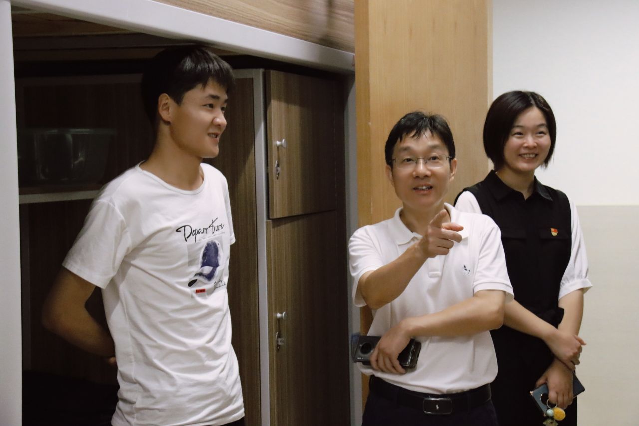 党政领导、2021级新生班主任、辅导员等都分别走访了新生寝室看望到嘉第一天的新生们。