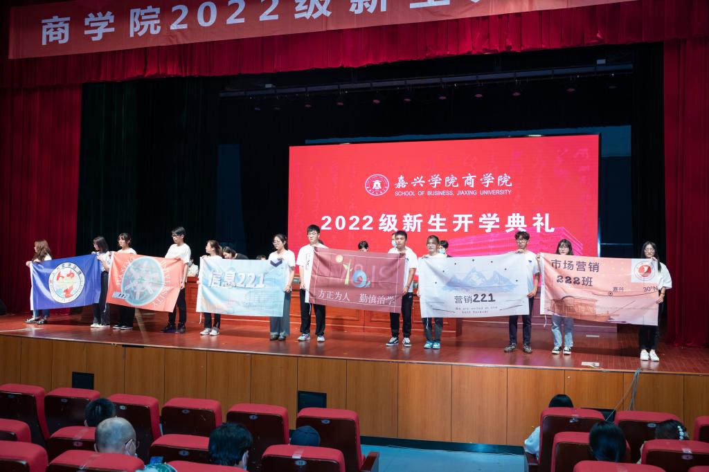 还为新生班主任及助理辅导员发放了聘书,新生各班代表也为师生们展示了自己亲自设计制作的班旗,表达了他们对大学未来四年的憧憬和期许。