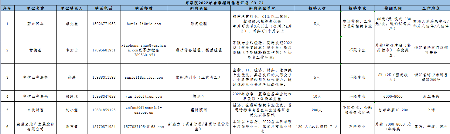 百家乐赔率 2022年春季校园招聘已启动,为帮助同学们便捷高效了解相关信息,汇总一批企业信息,涵盖蔚来汽车、肯德基等六家企业,招聘岗位明细见附件。