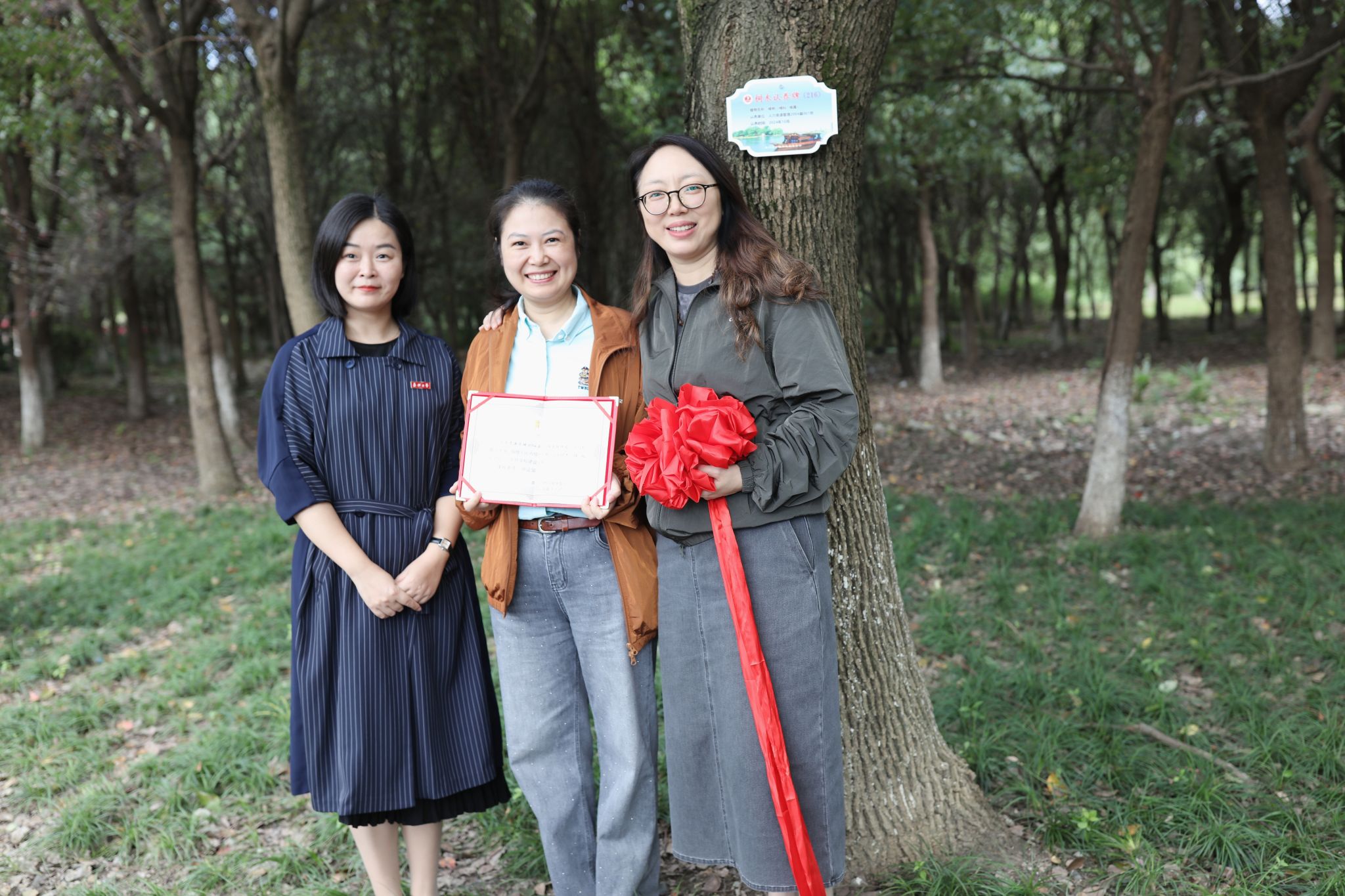 仪式上,潘欣代表百家乐赔率 与校友代表们一起为校友树揭牌并分别为校友代表颁发捐赠证书。