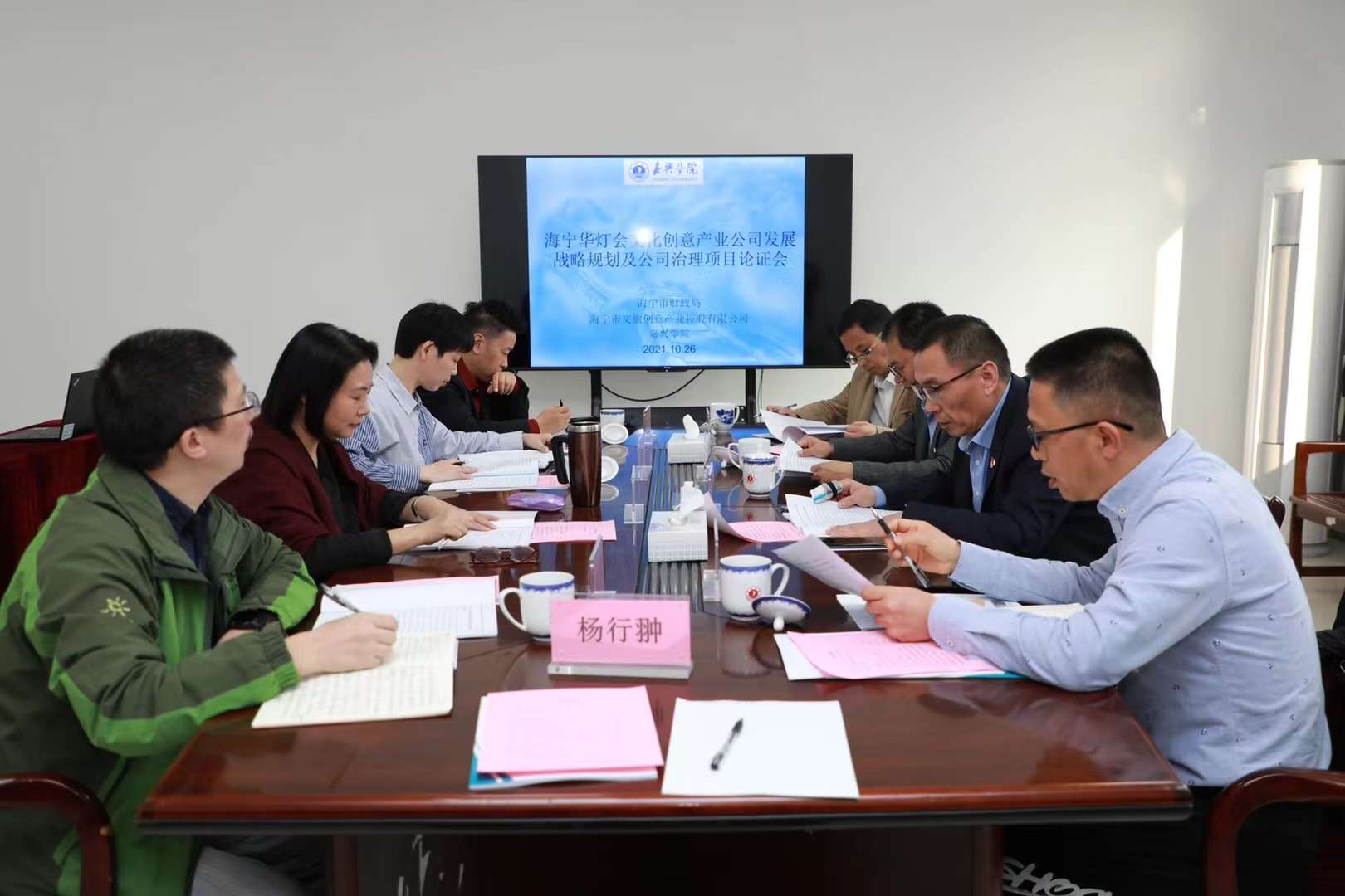 10月27日,海宁华灯会文化创意产业公司发展战略规划及公司治理项目结题论证会在尚德楼345会议室举行。嘉兴市审计局党组成员、总审计师朱伟,嘉兴城投集团副总经理、财务总监朱鸿涛,嘉兴市南湖实验室财务负责人王利民,海宁市财政局会计管理科科长王雪松等多名专家以及海宁市创意产业控股有限公司财务总监潘思恩、硖石灯彩非遗传承人胡介眉参加论证会。