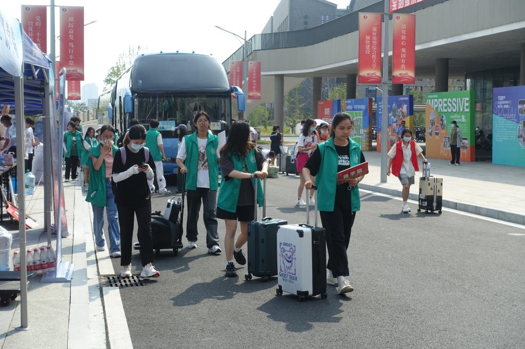 8月19日-8月20日,百家乐赔率 迎来了500余名来自全国各地的2022级新生。由于疫情防控需要,家长只能送到校门口,新生们在志愿者的协助下背起行囊走进大百家乐赔率 门,开启人生新的篇章。