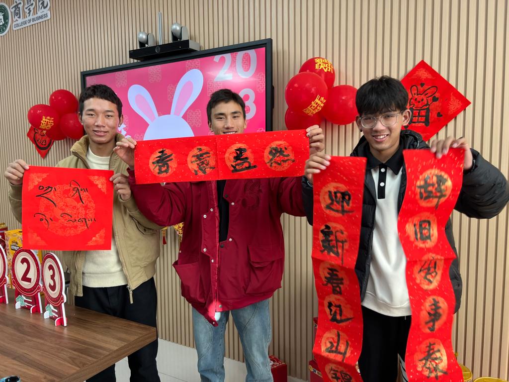 让他感受到家的温暖,今年将是一生中难忘的一个春节。这也是他没能和父母在一起度过的第一个春节。会后,与会老师与同学们一起写春联,送春节大礼包和防疫物资,整个活动现场洋溢着欢快、祥和的节日氛围。