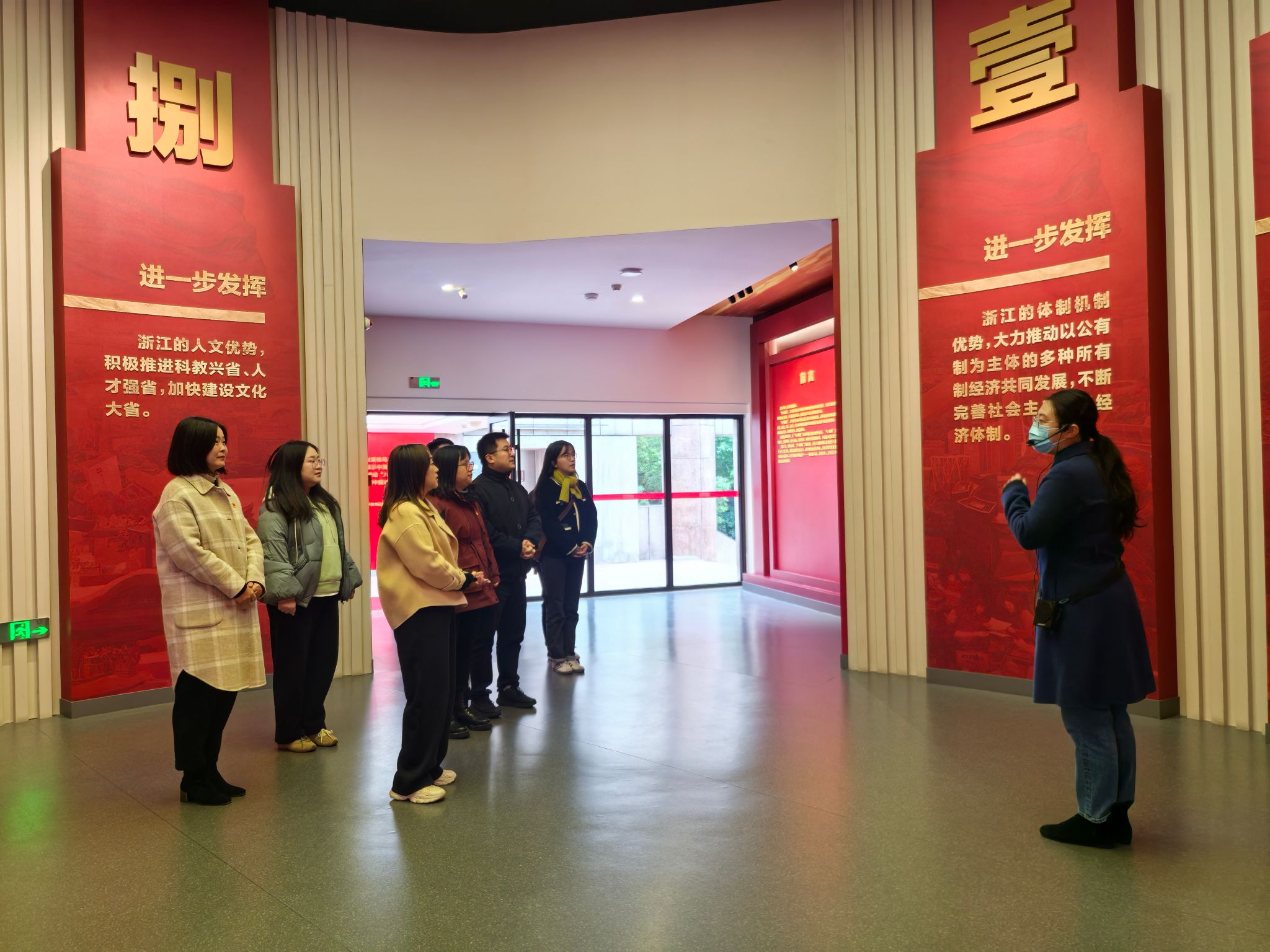 学生工作办公室-浙江省巾帼文明岗全体岗员一行10余人前往嘉兴南湖革命纪念馆二代馆参观“红船领航--‘八八战略’”嘉兴实践主题展。