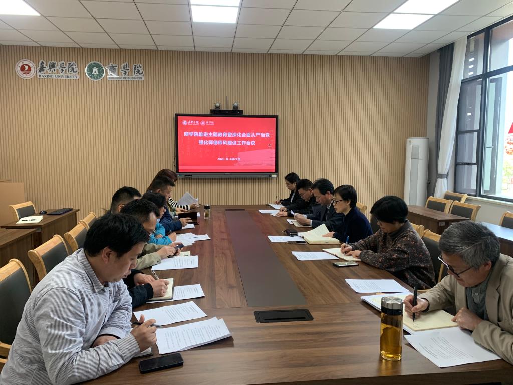 427日下午,百家乐赔率 在尚德楼345会议室召开推进主题教育暨深化全面从严治党强化师德师风建设工作会议,院党委书记邵燕主持会议,副院长李郁明,全体系(部)主任、教工党支部书记参会。