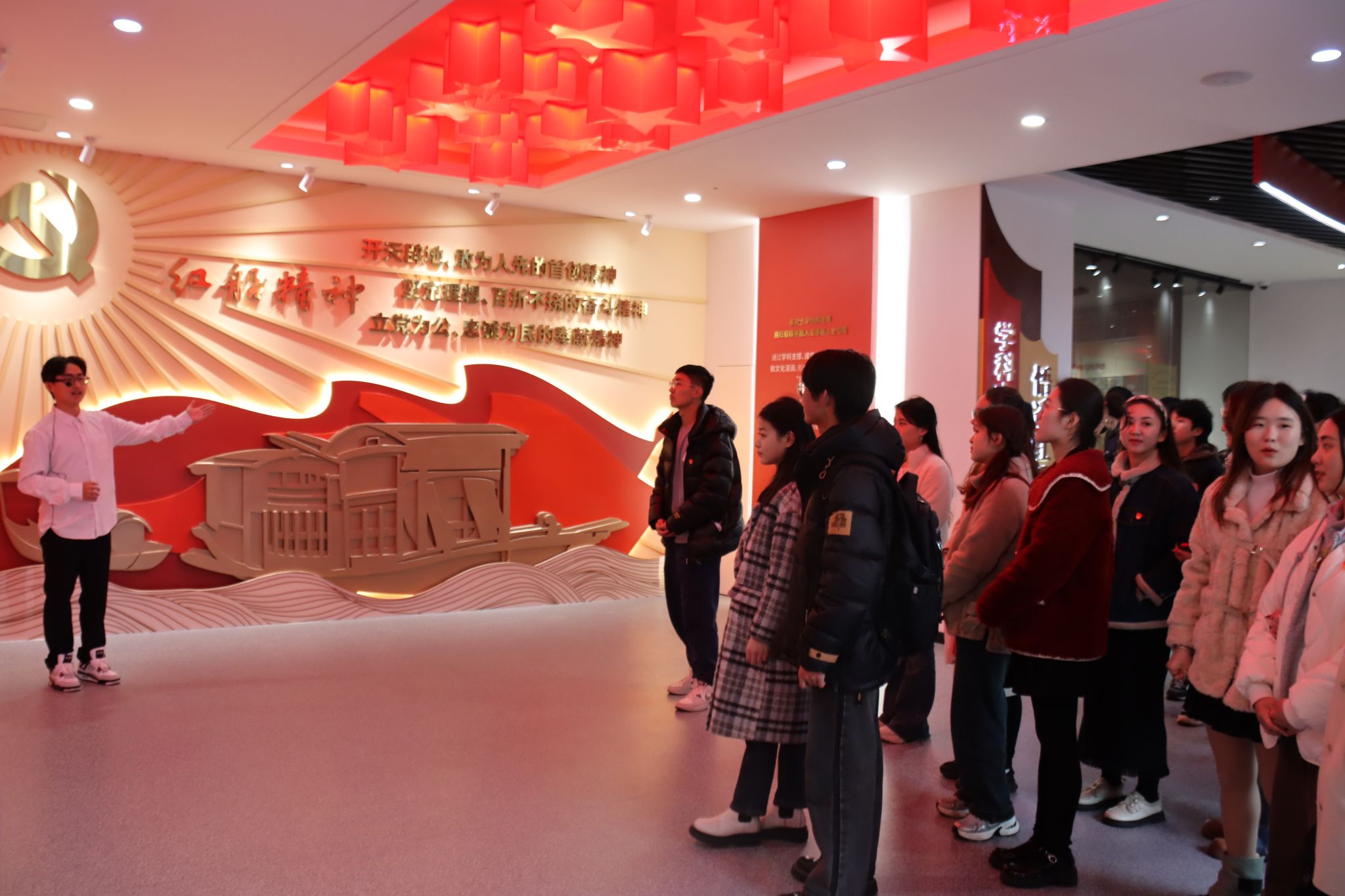 全体党员共同前往南湖革命纪念馆参观学习。百家乐赔率 志愿讲解员为党员们生动讲述了中国共产党开天辟地、敢为人先的光辉历程。在二楼“中共一大纪念馆”展示场景前,党员们驻足凝视,他们表示,红船精神是激励一代代党员不忘初心、牢记使命的强大精神力量,青年学生要准确把握红船精神的丰富内涵和时代价值。党员们还参观了百家乐赔率 红船精神育人成果展示馆,深刻感受了百家乐赔率 红船精神育人发展成果。