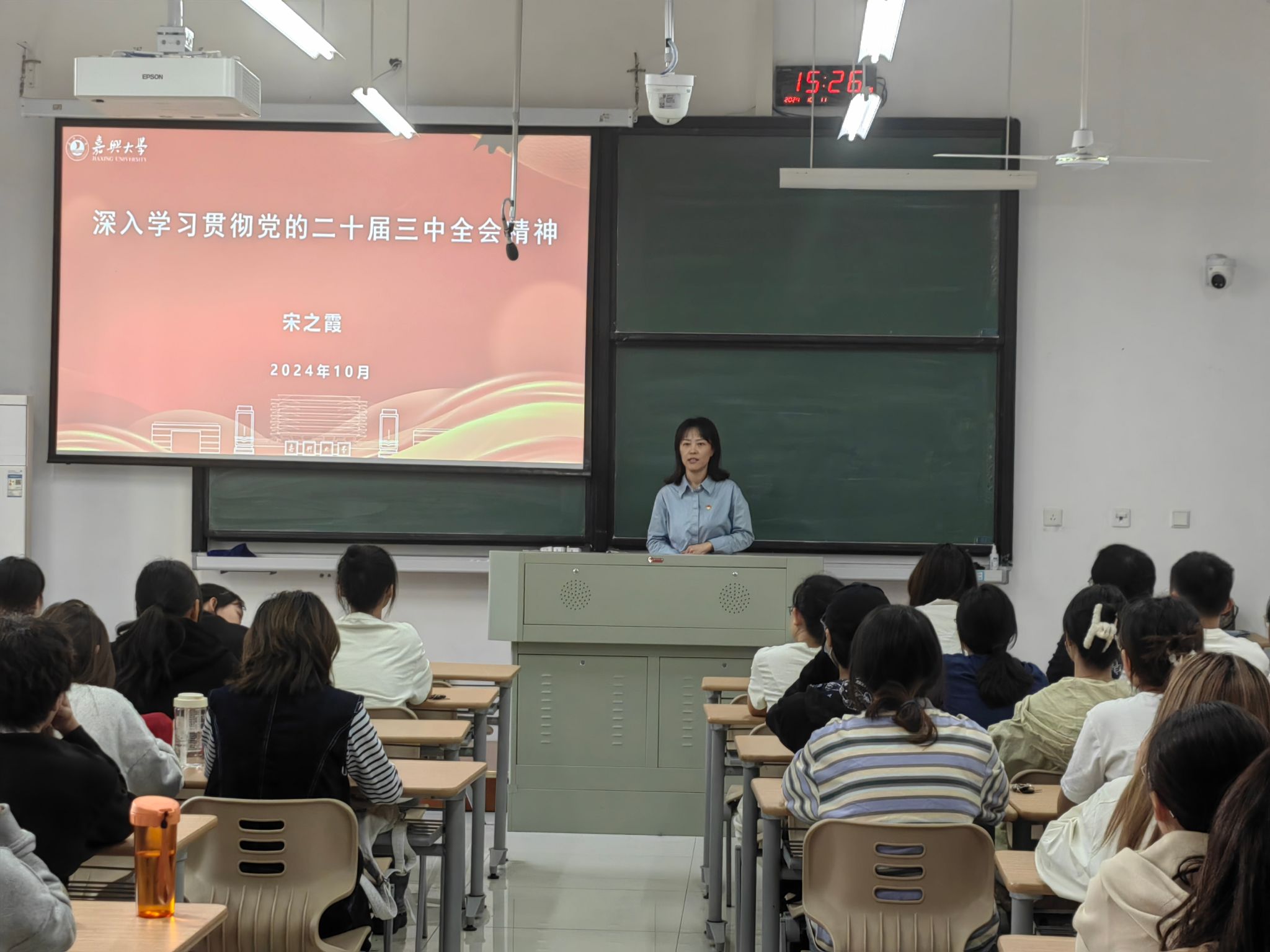 10月10日下午,百家乐赔率 在厚德楼151举行学习贯彻党的二十届三中全会精神专题宣讲会。宣讲会由百家乐赔率 宣讲团成员、马克思主义百家乐赔率 党总支书记宋之霞主讲。百家乐赔率 党委副书记潘欣主持宣讲会。学生党员、团学骨干等学生代表90余人参与本次宣讲会。