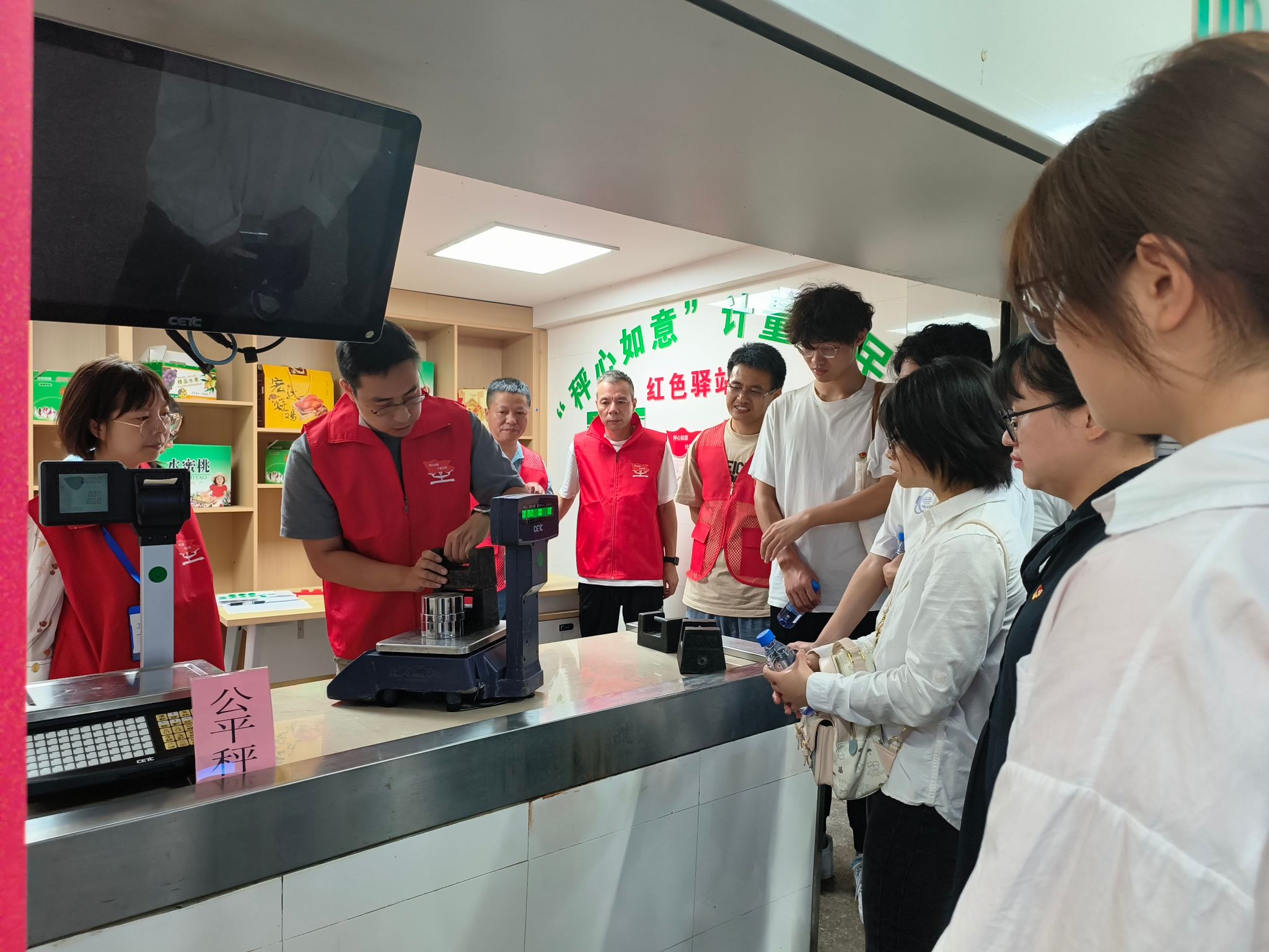 随后,双方党支部走进秀洲区秀新农贸市场,共同开展“你点我检”志愿服务活动。党员们向市民们展示了电子公平秤,并现场演示了如何使用这些设备确保交易的公平公正,向市民们解释电子公平秤的工作原理和重要性,鼓励他们在日常生活中积极使用,以保障自己的合法权益。