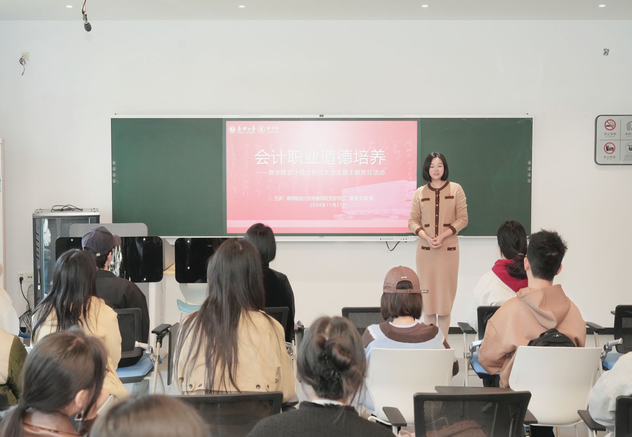 11月21日,百家乐赔率 会计硕士研究生党支部在尚德楼103开展主题党日活动,支部书记潘欣和支部全体党员参加活动。