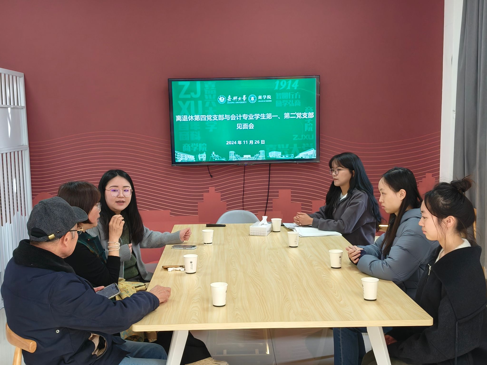 会上,傅友土详细介绍了离退休第四党支部的基本情况,他表示,老党员们拥有深厚的党性修养和丰富的经验,愿意投身于关心下一代的工作之中,充分发挥老同志人生经历积淀的宝贵财富,为青年学生的成长成才贡献自己的力量。李雨嘉分享了学生支部近年来在党建、学习、社会实践等方面所取得的成绩,并提出双方党支部可以通过共读红色经典、共办主题党日、共赴红色基地、共研红色课题等形式开展共建活动,将老党员们的经验和智慧传承给青年学生们。