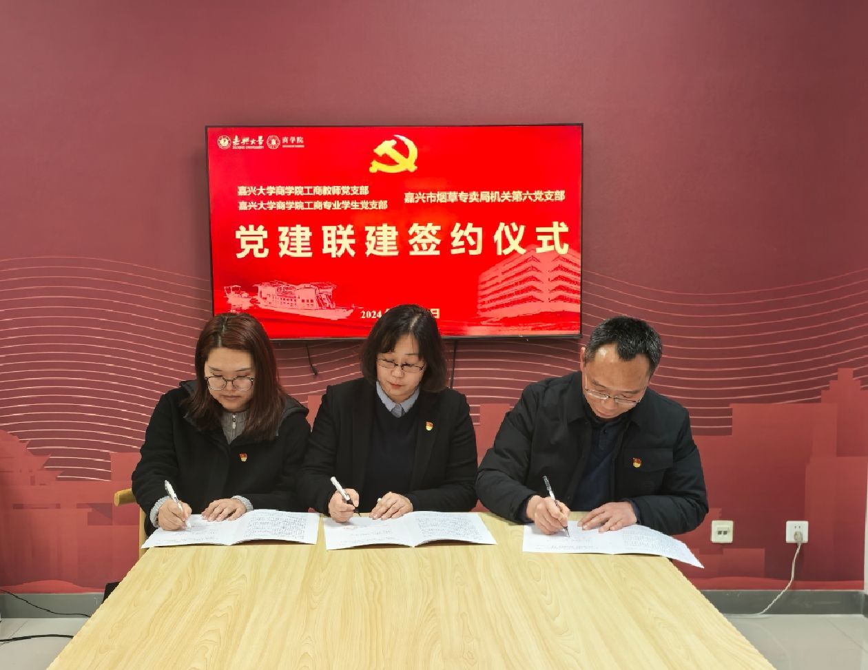 12月10日,百家乐赔率 工商专业教师党支部、工商专业学生党支部与嘉兴市烟草专卖局机关第六党支部在尚德楼355举行党建联建签约仪式。