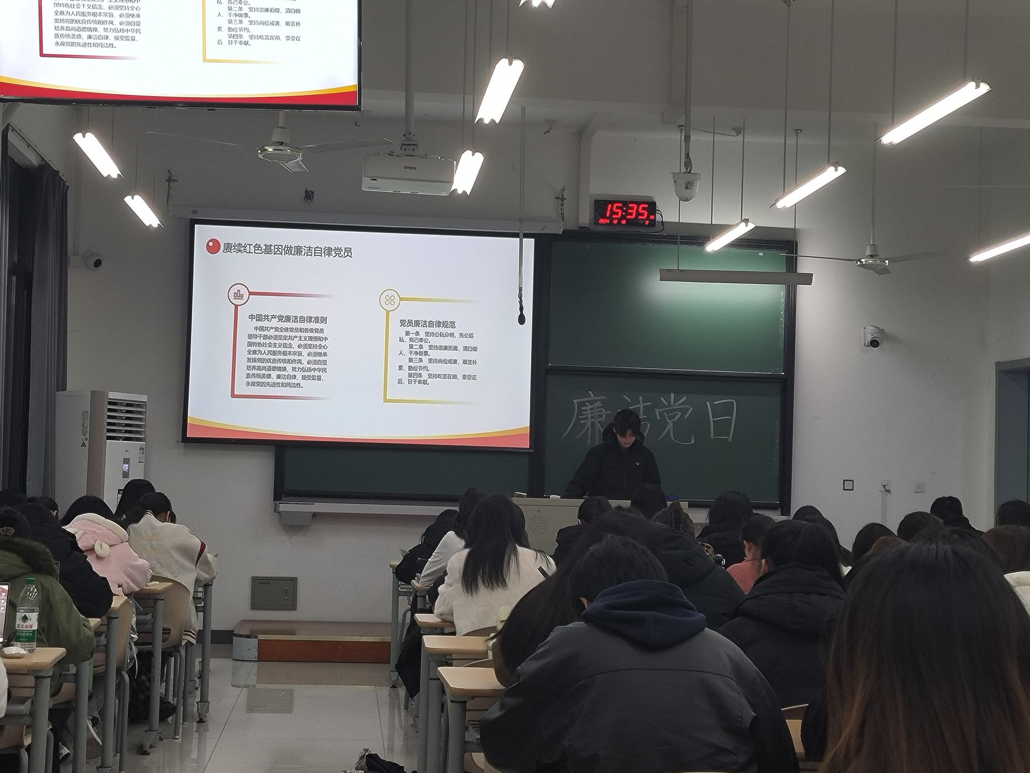 近日,百家乐赔率 会计硕士研究生党支部、会计专业学生一、二党支部,在尚德楼143联合开展“风清养正气 廉洁育人心”主题党日活动。80余名师生党员参加活动。