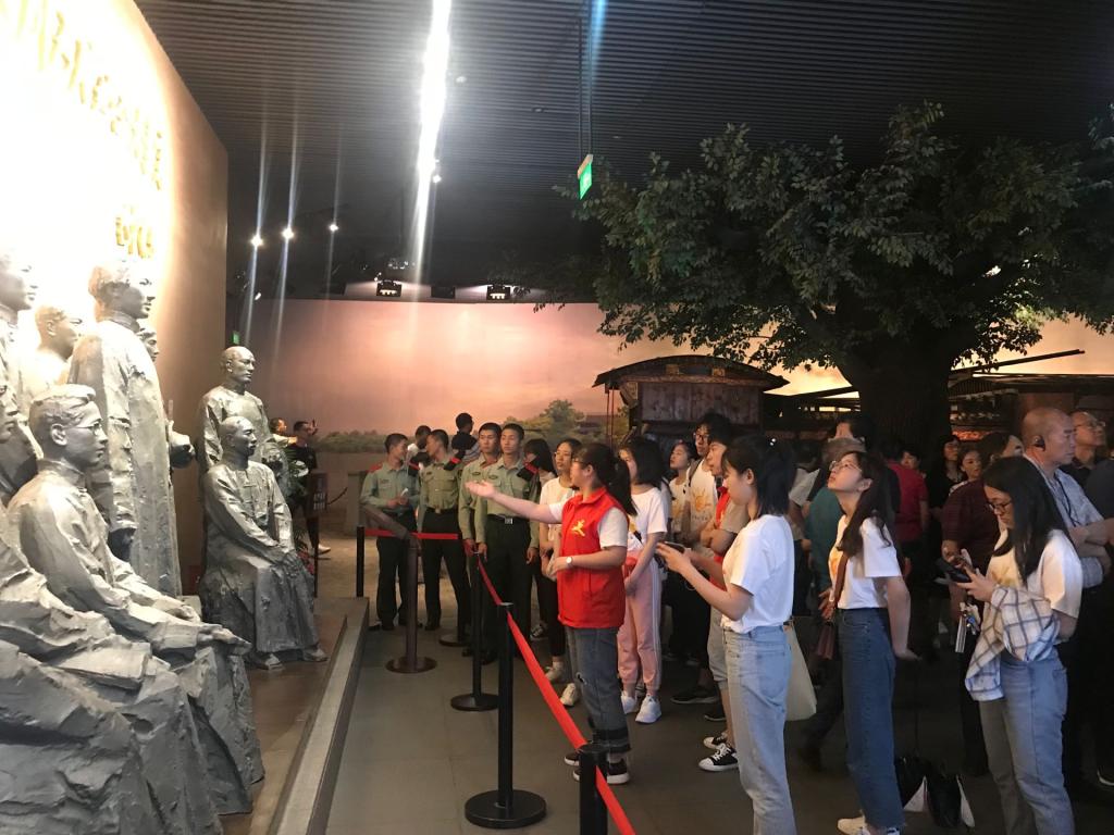 (二)实践服务,夯实“红船育人”路径。讲解团每周六上午八点到纪念馆进行志愿讲解服务,在疫情防控时期采取线上“云讲解”形式。举办了“红色之旅” “党团共建”等活动邀请党团员到进纪念馆共学习,走进中小学、社区、交通枢纽站,讲解革命故事,弘扬红船精神。
